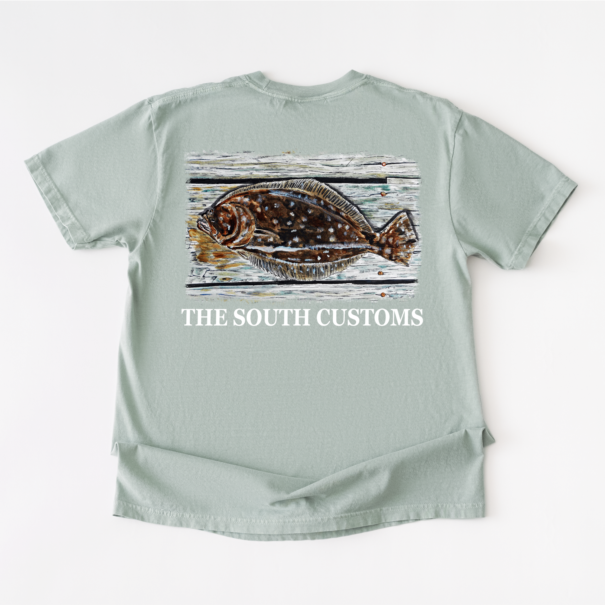 A laid-back flounder design made for the ones who know the best coastal days start slow and end with a full cooler. Printed on a premium, garment-dyed tee with a relaxed, broken-in feel.